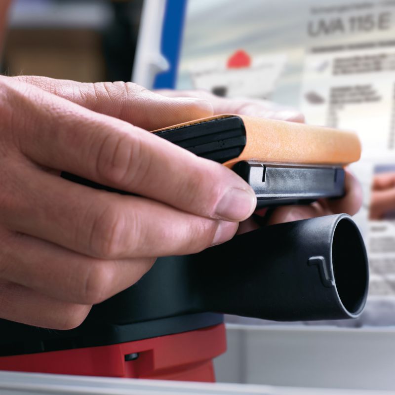 - Vibration absorbers effectively isolate the main and auxiliary handles. The emission value measured at the front handle, for example, is 1.9 m/s² – lower than the threshold value of safety standard EN 60745 (2.5 m/s²). As a consequence, compared with other sanders, the UVA 115 E transmits substantially less vibration to the hands and arms.