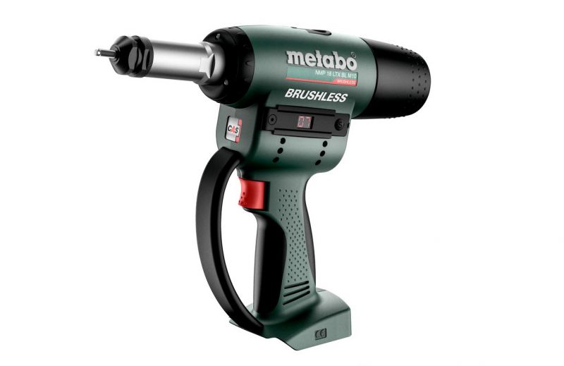 - Metabo cordless rivet nut gun with setting power adjustment for blind rivet nuts up to M10 in aluminium, M8 in steel, M6 in stainless steel