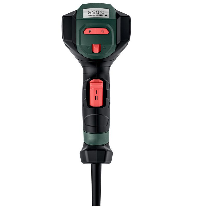- Metabo precise hot air gun with LCD display for precise setting of temperature and air volume for different materials and applications