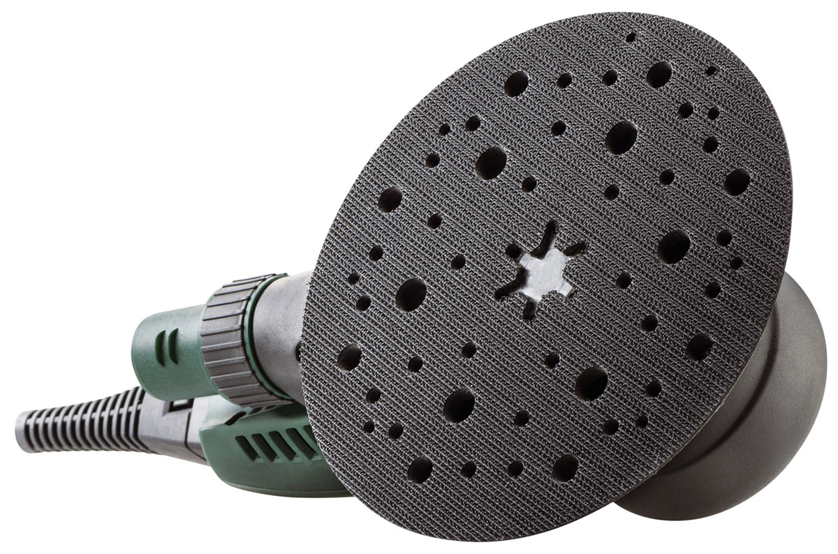 - Grinding plate with multiple holes for effective extraction and a longer service life of the sanding medium.