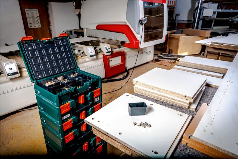 - Maximum overview thanks to the twelve Sortimo insertion boxes in different sizes that can be positioned freely