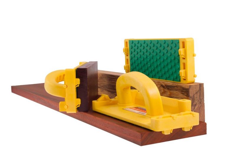 Total workpiece control. Experience total control over your workpiece for freehand routing while keeping your hands safe. Smart hooks lock in the retracted position, keeping them away from the router bit. The Deflector / Connector protects against debris and woodchips. For extra traction, use the Deflector / Connector to bridge two GRR-RIP BLOCKs together when handling larger material like raised panel doors (