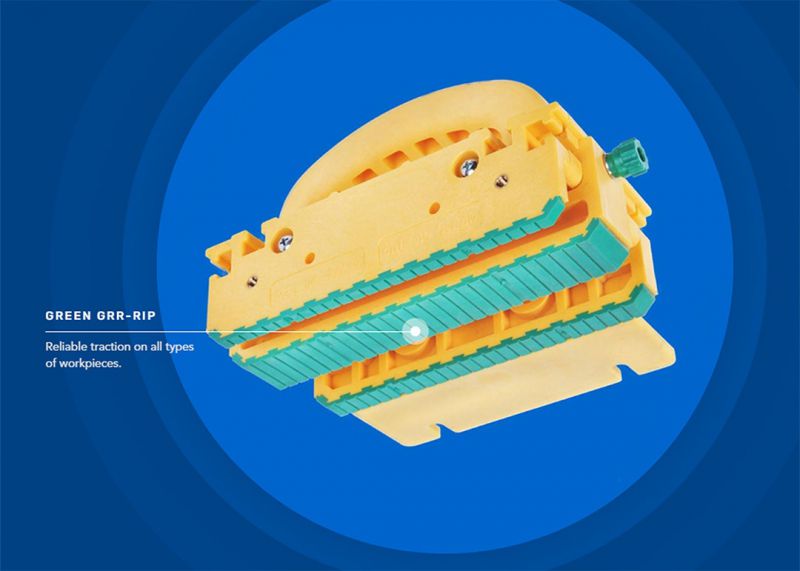 Ultimate gripping power. GREEN GRR-RIP® gives you incredible traction for easy handling of hardwoods, composites, plastics and aluminum. Its treaded surface conforms to the workpiece for superior control. Dust and buildup easily wipes off with denatured alcohol. The additional 1″ of GREEN GRR-RIP® on the Adjustable Spacer provides even more traction for ADVANCED control.