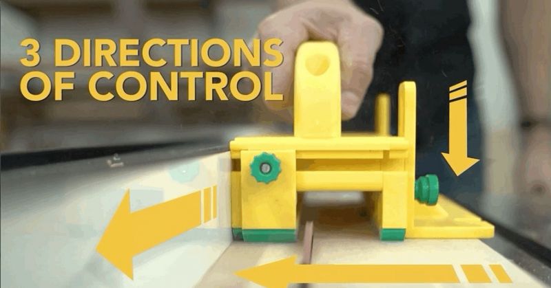 Three directions of force. Three directions of force provide essential stability for superior precision, safety, and control. Downward pressure stabilizes work piece on a flat surface. Inward pressure against the fence virtually eliminates kickback. Forward pressure feeds stock consistently through the cut to eliminate burning and blade marks.
