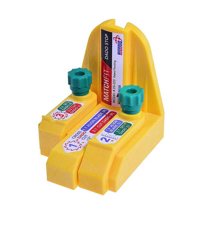 The Dado Stop references the blade’s unique kerf and the actual inlay material to measure the cut. Setting up your dado cut takes just a few seconds, and eliminates the need for measuring, test cuts, and wrestling with multiple blades and shims. Best of all—there's no dado blade required.