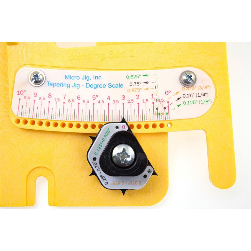 - Exceptional Precision: Taper Cuts as Accurate as 1/8 of a Degree. Precision is the key to unlocking the true potential of your woodworking projects. The MICRODIAL Tapering Jig boasts infinite taper adjustments between 0 and 10 degrees, allowing you to achieve taper cuts with an incredible accuracy of 1/8 of a degree. Our easy-to-use Rise Over Run ColorMatch dial sets your taper between 0" to 2" with 1/16" intervals, while the Degree Scale ColorMatch dial enables you to set exact angles effortlessly. Say goodbye to guesswork and unleash your creativity!