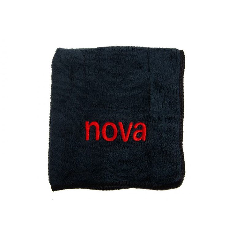 - Black microfibre workshop towel with red embroidered NOVA logo