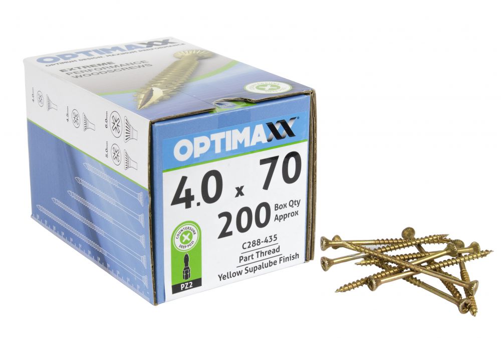 Optimaxx Extreme Performance Woodscrew 4.0mm x 70mm - POZI - Box of 200