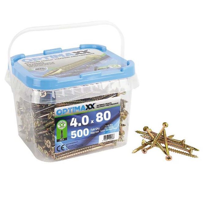 Optimaxx Extreme Performance Woodscrew 4.0mm x 80mm - POZI - Maxxtub of 500