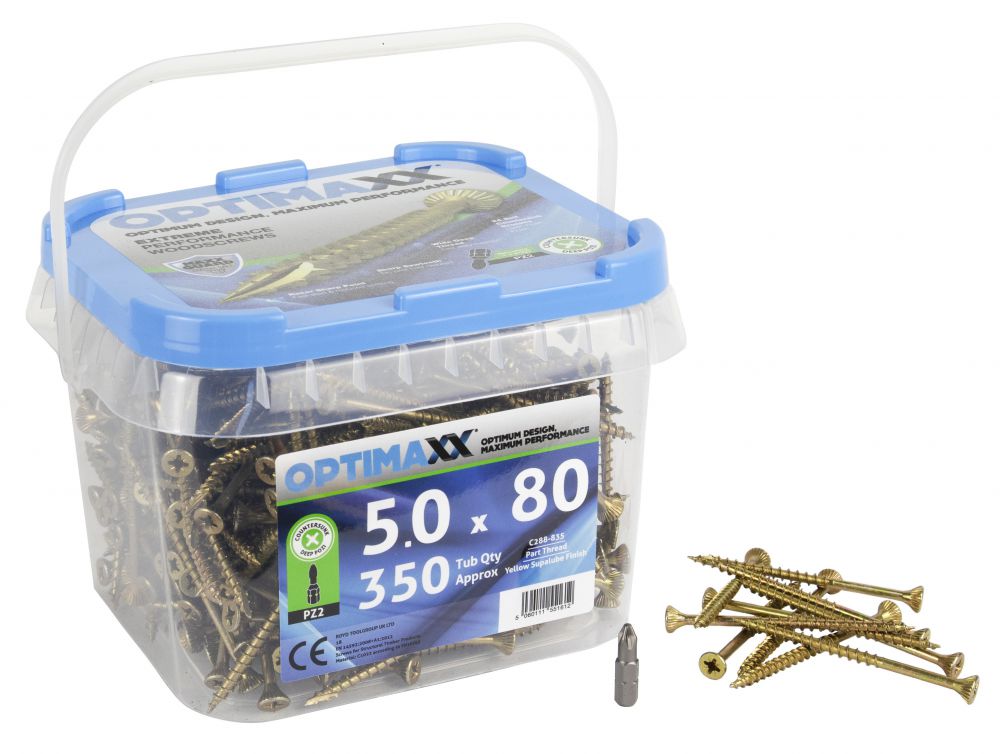 Optimaxx Extreme Performance Woodscrew 5.0mm x 80mm - POZI - Maxxtub of 350