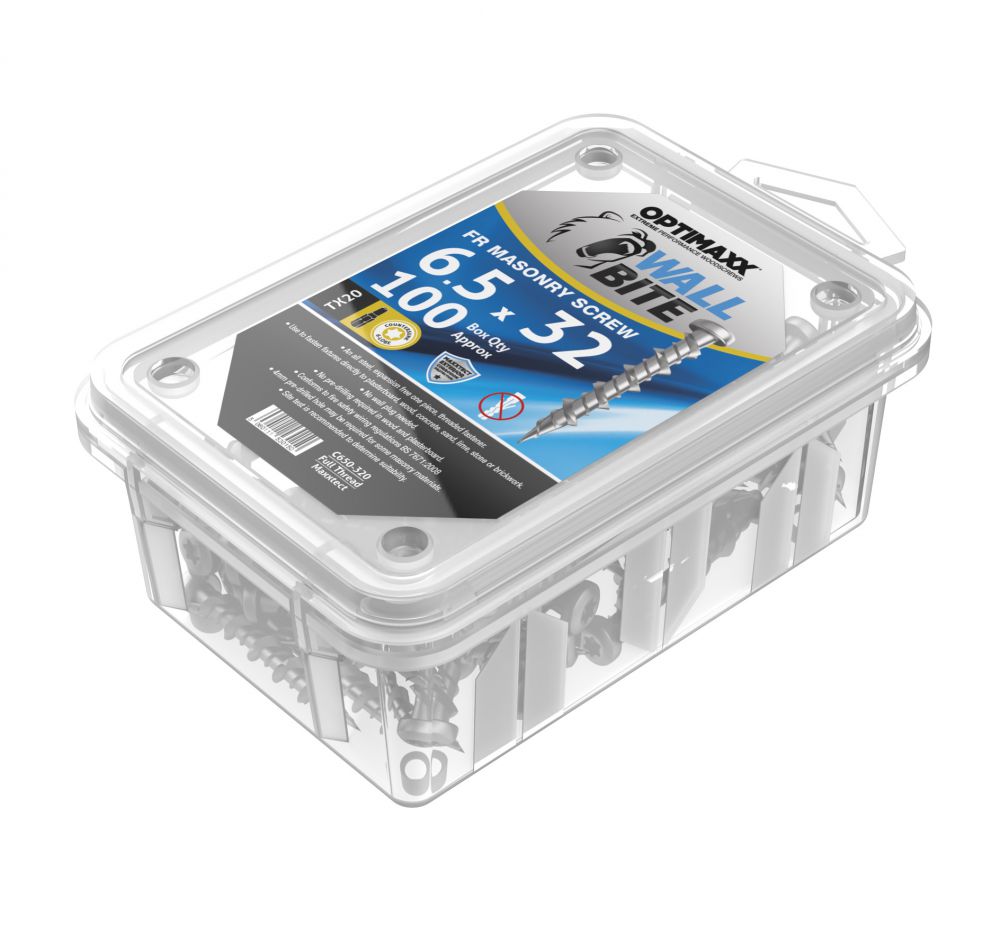 Optimaxx Wall Bite Masonry Screw 6.5mm x 32mm - TORX - Tub of 100 (Silver)