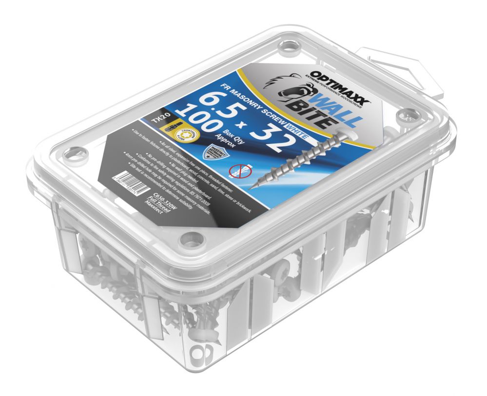 Optimaxx Wall Bite Masonry Screw 6.5mm x 32mm - TORX - Tub of 100 (White)