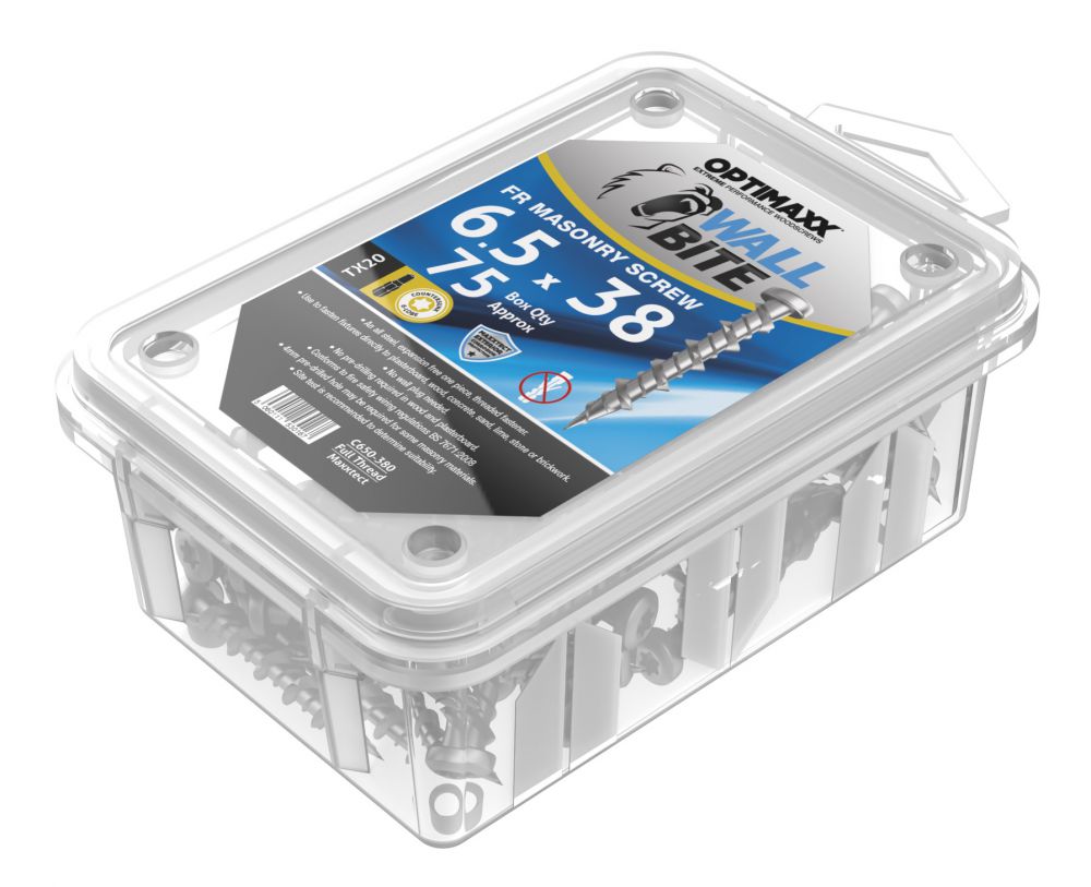 Optimaxx Wall Bite Masonry Screw 6.5mm x 38mm - TORX - Tub of 75 (Silver)