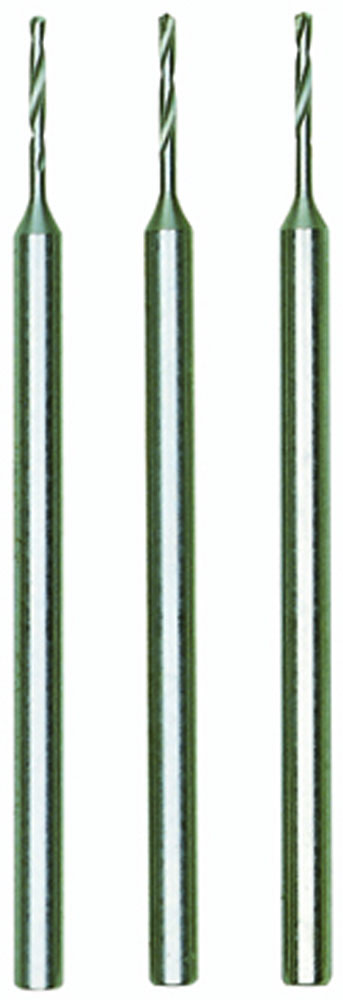 HSS drill bits made from specially selected steel. Method of manufacture ensures high concentricity and accuracy. The shank and bit are made from a one-piece blank. A high degree of hardness for the longest possible life expectancy. For drilling metal, non-ferrous metals, plastic, PC cards and wood. Work speeds: hard materials approx. 3,000rpm, soft materials approx. 8 000rpm. All shafts are 2.35mm, supplied in packs of 3 per size.
