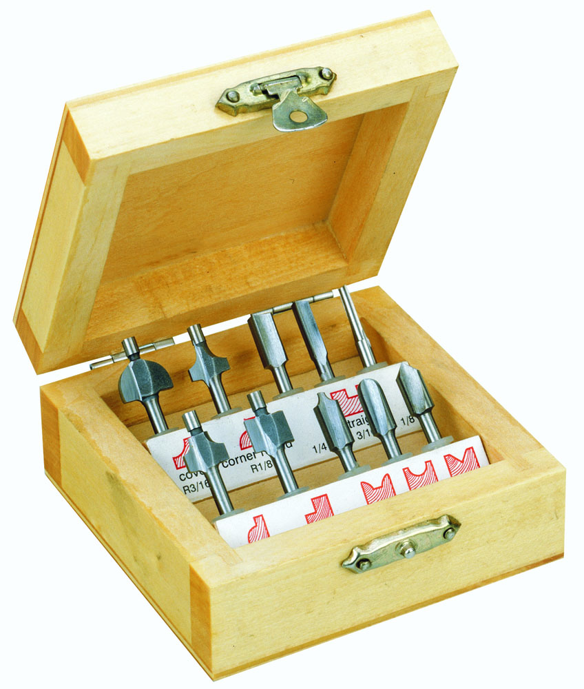 - A set of 10 consisting of: 3.2mm, 5mm, 6.5mm straight, 3.2mm radius veining, 3mm radius beading, 6.5mm vee groove, 2.4mm guided beading, 3.2mm guided beading, 4.8mm guided cove and 3.3mm guided rebate cutter.