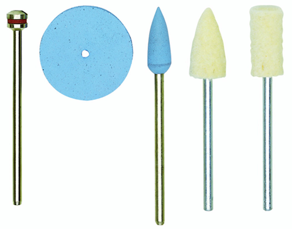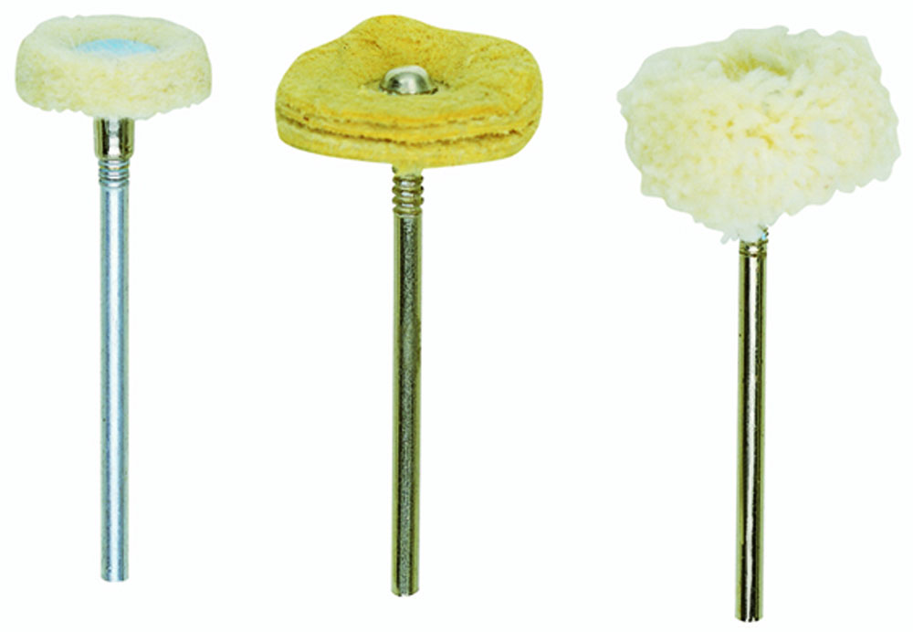 - 3 felt polishing bits (cylinder, cone, wheel)