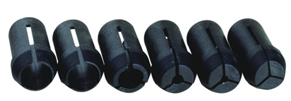- Workpieces are secured by means of collets (one each of 2, 3, 4, 6, 8 and 10mm) are included.