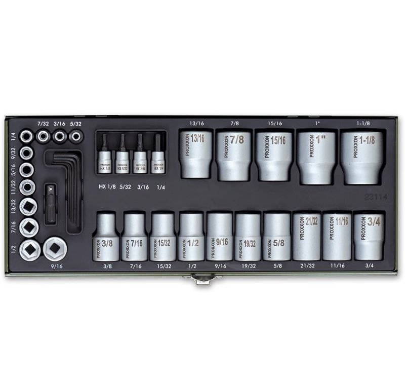 Proxxon Socket Set Imperial - 36pc 1/2" + 1/4" Drive - 23114