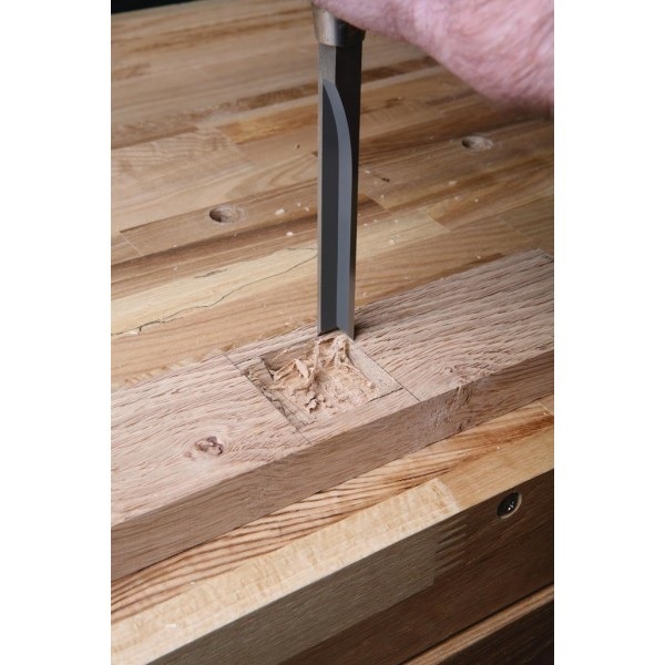 Used primarily for squaring up and cleaning waste wood from the corners of mortices. The two cutting faces meet at 90 degrees to give an accurate, square corner. Bevel is on the inside. Fitted with comfortable boxwood handle. To sharpen a corner chisel place it in a vice and hone each of the inside cutting faces separately with a diamond hone or file. This gives you a clear sight of exactly what is being honed.
