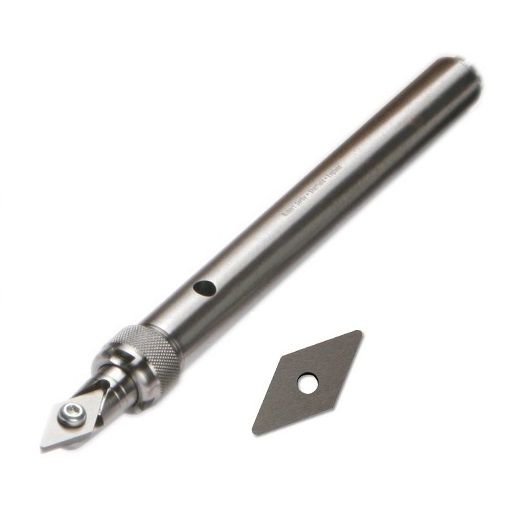Tungsten Carbide: Makes light work of tough materials and is an extremely hard wearing and long lasting material. Although designed as a thowaway item it can be sharpened on specialist equipment such as Robert Sorby's ProEdge when fitted with a diamond belt. (Made mush easier with the aid of the tip holder RSTM-TH). Sharpens to 0.7 - microns. Hardness: 90 RC.