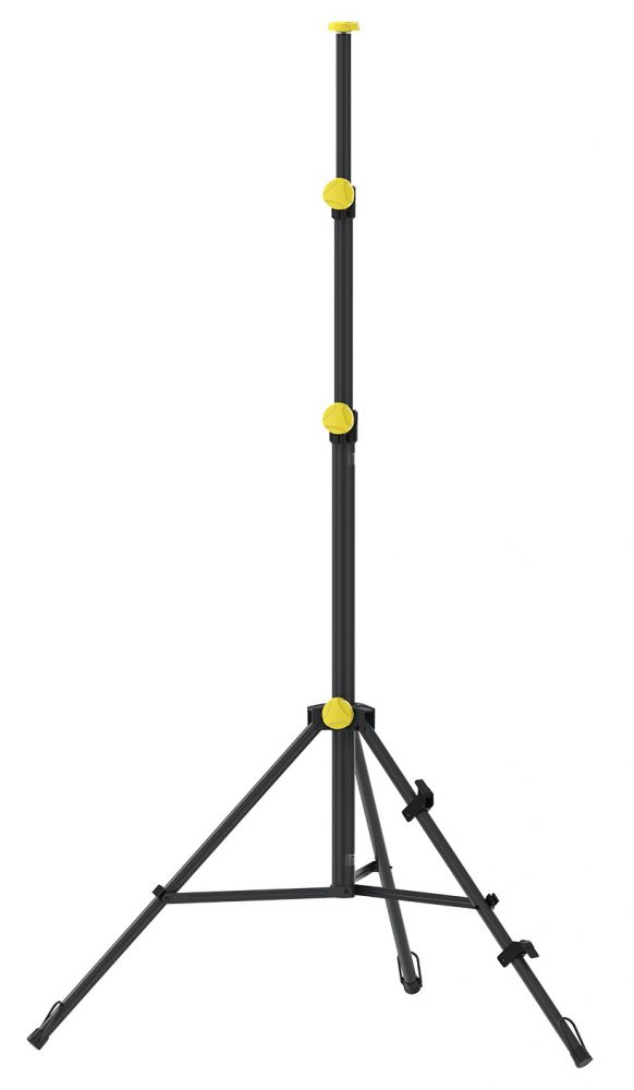 - The tripod is made of durable and sturdy powder coated steel. To increase safety when in use, cables can be positioned in the safety clips placed on each of the tripod’s legs.