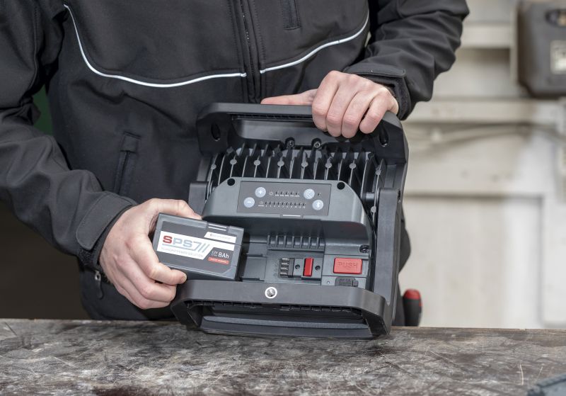 The new SCANGRIP POWER SOLUTION provides you with unlimited availability to light. Easily you can insert a new, fully charged battery and continue the work while another battery is charging. Or you can simply add the charger directly to the lamp to get power supply. The integrated battery backup function prevents you from being without light at any time.