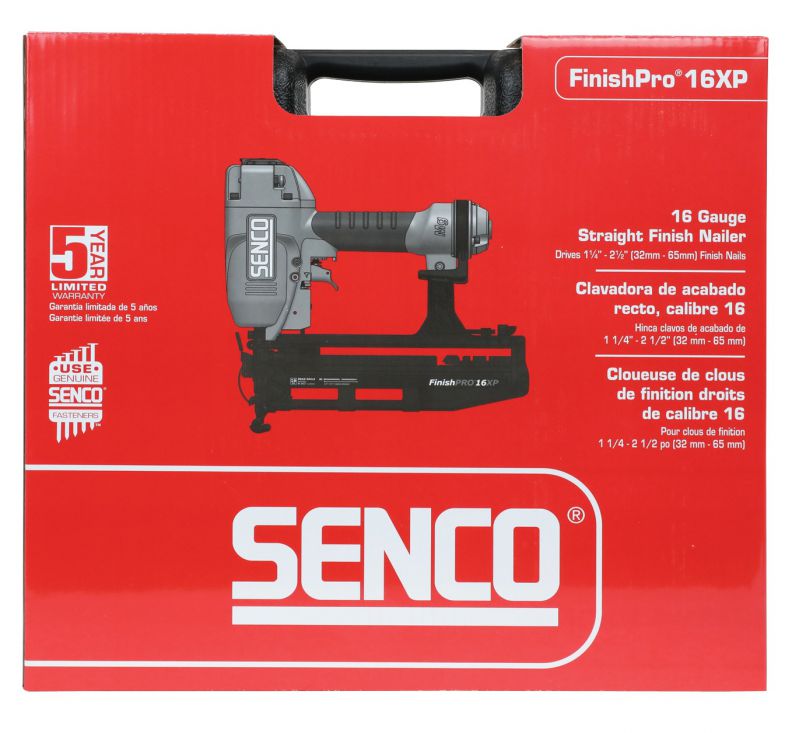 - The FinishPro®16XP 16 gauge nailer delivers Senco's legendary performance in a rugged, lightweight package. Built with an ultra durable magnesium body and a stamped-spring EZ-Clear latch system, the FinishPro®16XP virtually eliminates downtime and fastener jamming. It Drives 1,6mm (RX) fasteners from 32 to 65mm.
