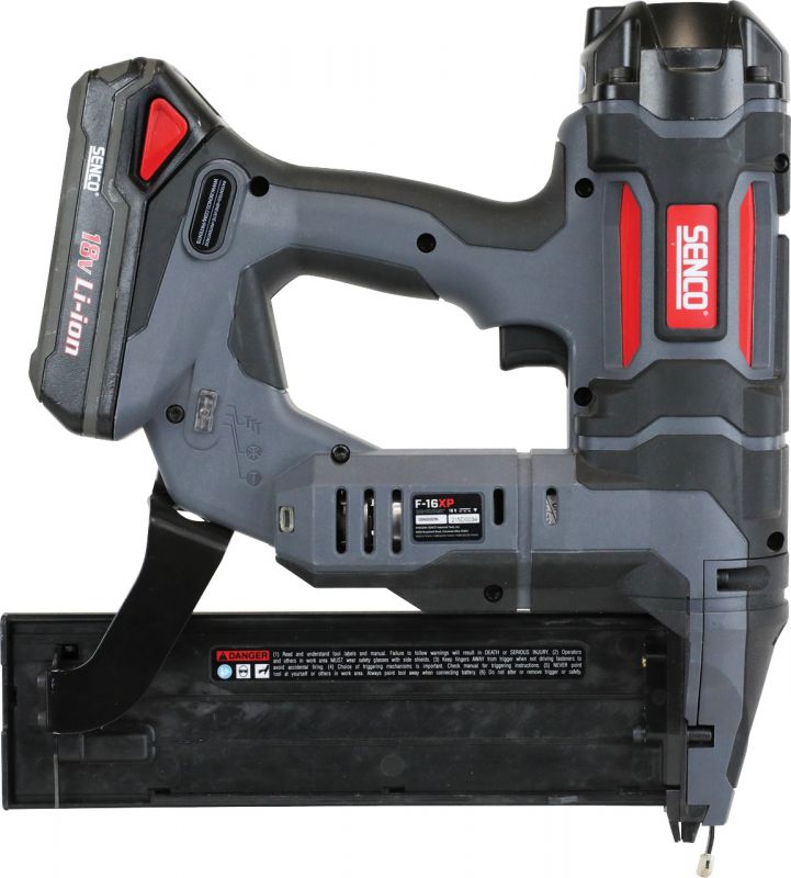 - SENCO's F-16XP, featuring Fusion Technology, has the power and utility of a pneumatic tool combined with the convenience of a cordless tool to drive 63mm finish nails into the hardest woods. It drives 1,6 (RX) brads ranging in length from 32mm to 64mm. Our patented design provides an instant shot when the trigger is pulled with no ramp-up time. Perfect for trim crews, remodelers, punch-out, or anyone who does not want to deal with the hassle of a hose and compressor.