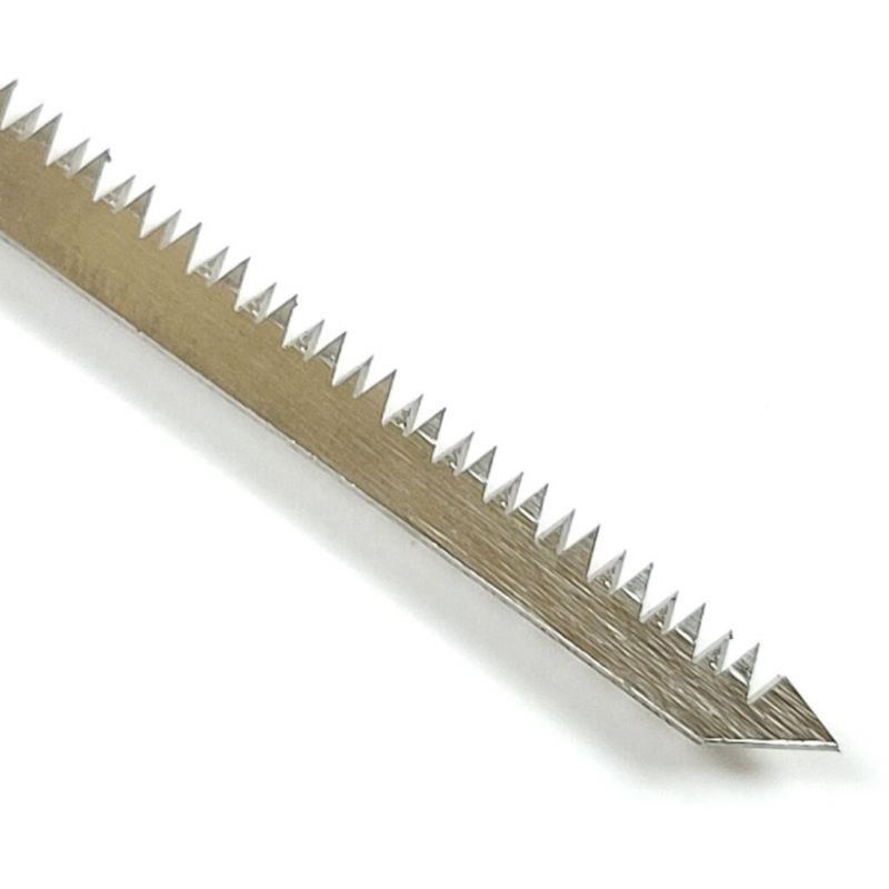- The blades are made of high quality Japanese steel and very thin to allow accurate cutting, the teeth are razor sharp and impulse hardened to ensure a long service life.