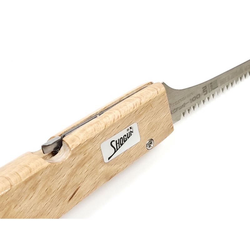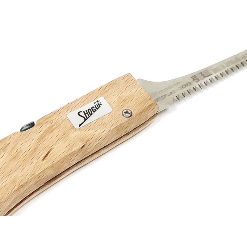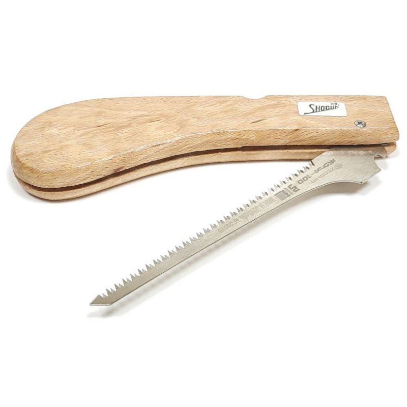 - The Shogun range of folding saws feature a wooden handle which incorporates a folding mechanism, allowing the high quality blade to be safely folded away when not in use.