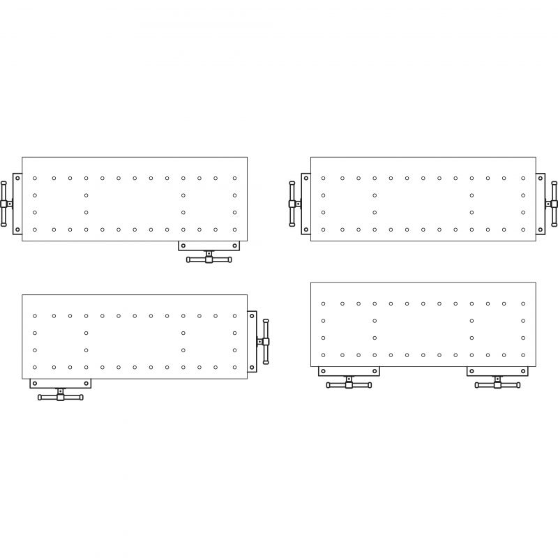 - There are four mounting locations for the vices allowing you to configure the vices to best suit your working preference. Both vices can be mounted on the front for heavy-duty clamping or one at either end for clamping in two positions and maximum clamping distance.