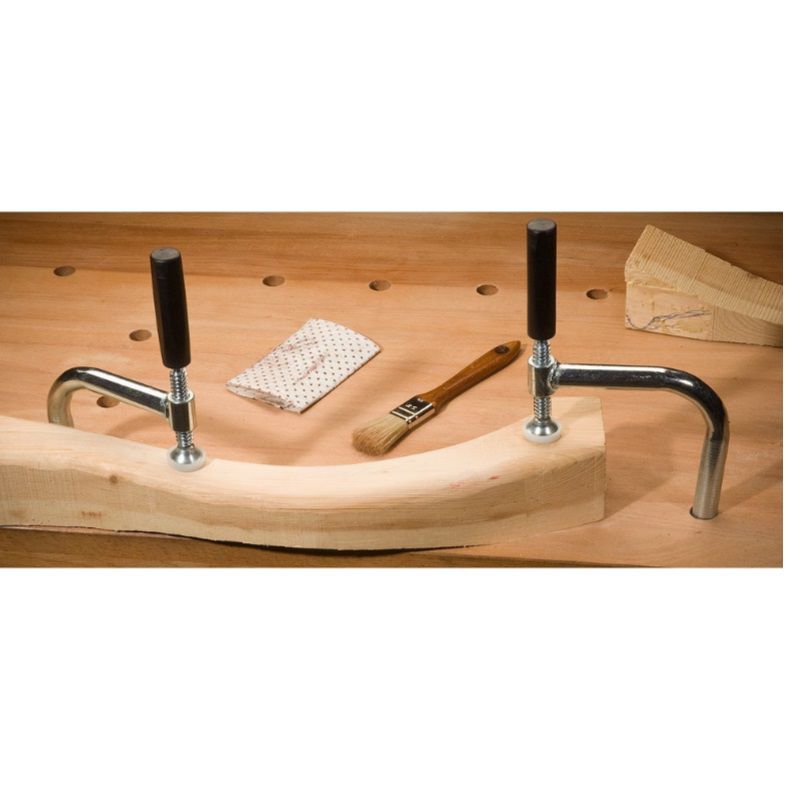 Sjobergs holdfast (ST03), supplied as a pair, which can be located in any of the dog holes on worktop or in the holes on the front legs of the bench. Fits any bench with 19mm dog holes.