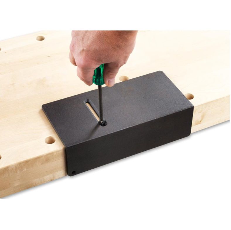 Sjobergs universal anvil fits all Sjobergs benches plus any other bench with minimum 19mm dog holes. Protect your workbench top by using this wraparound anvil that locks into any dog hole. Benches other than Sjobergs may require drilling in order to use the anvil.