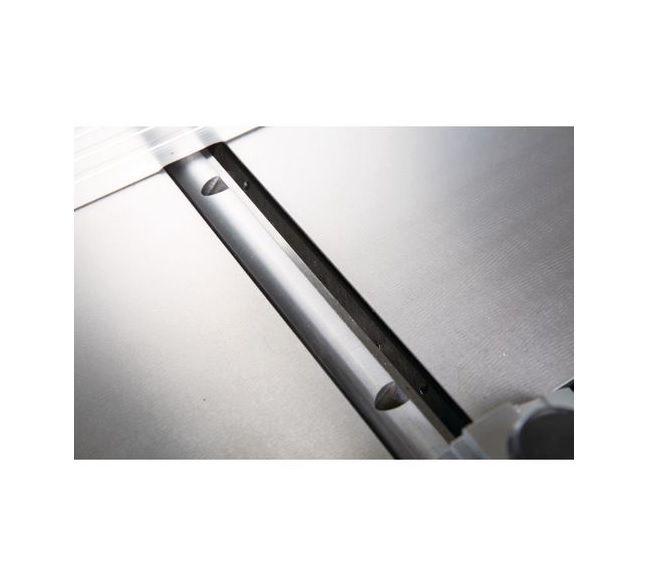 - Easily adjustable aluminum dressing fence, tiltable from 90 ° to + 45 °