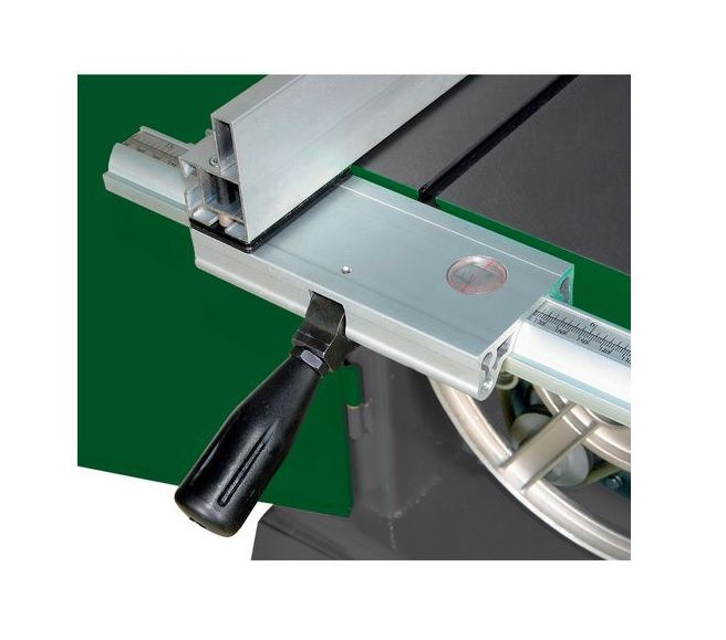 - Aluminum longitudinal stop with quick clamping precisely adjustable with the aid of a magnifying glass and millimeter scale