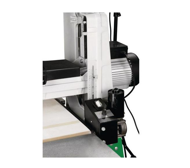 - The sanding unit is adjusted quickly and precisely to the workpieces by height adjustment crank and scale