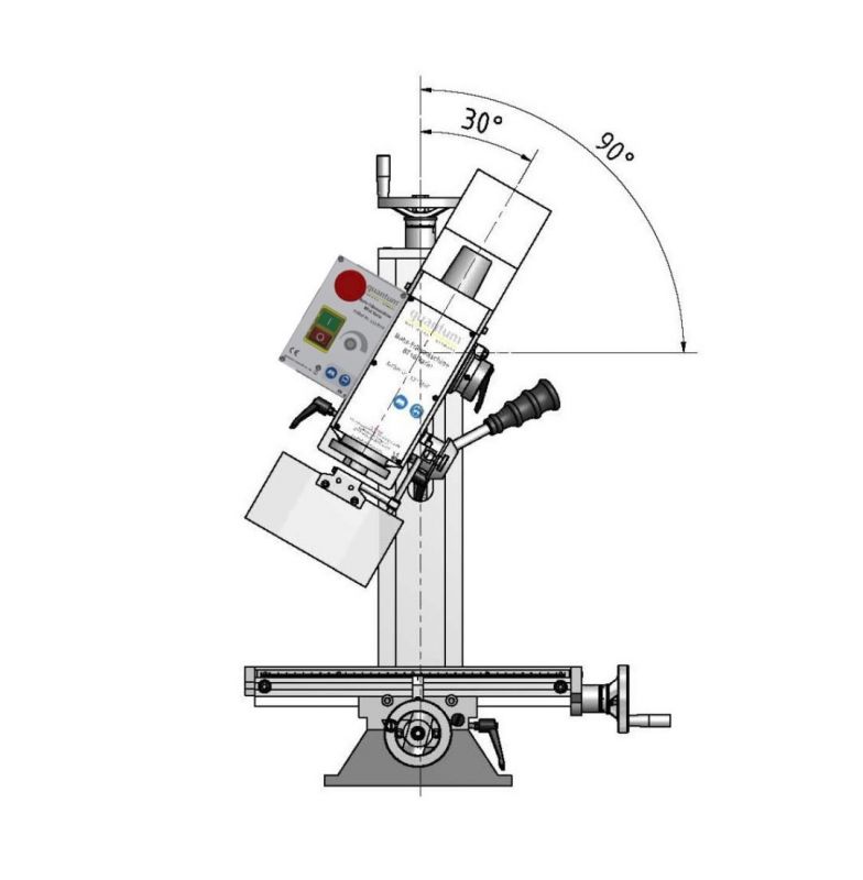 - Drilling and milling head can be tilted by ± 90 ° on both sides, thus drilling and milling in angular position as required