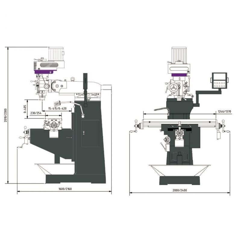 Multifunctional drilling and milling machines with mechanically infinitely variable drive and digital 3-axis position display DPA 31 Plus.