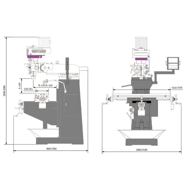 Multifunctional drilling and milling machines with mechanically infinitely variable drive and digital 3-axis position display DPA 31 Plus.