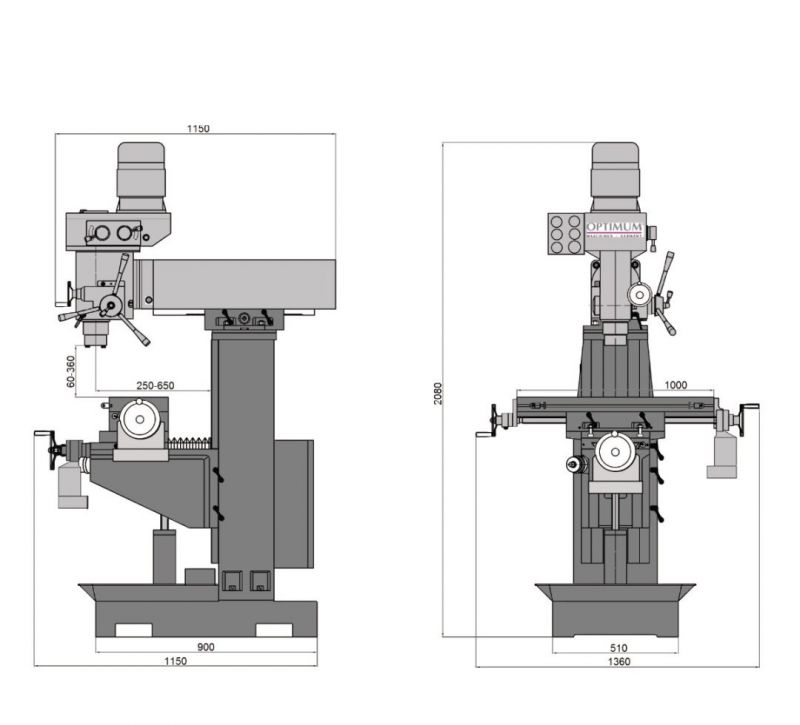 - Max. clearance vertical spindle – milling table: 360 mm