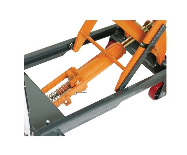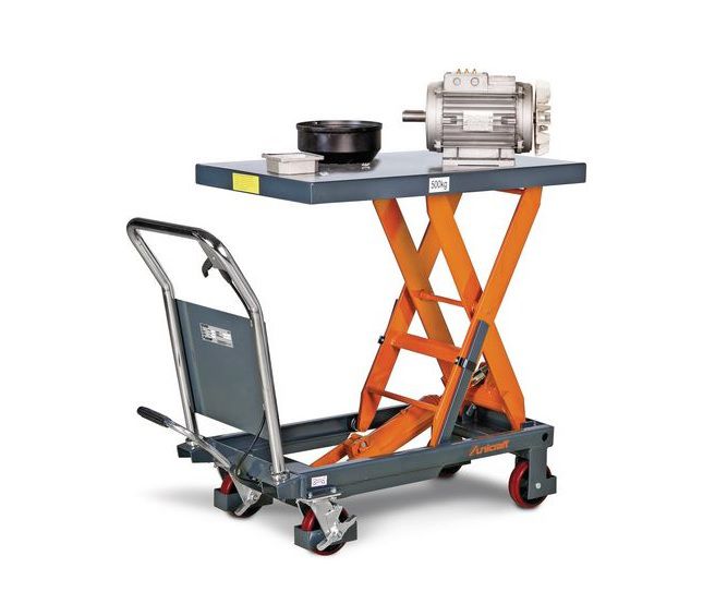 - FHT 500 Scissor lift + 500 kg max load capacity + hydraulic lifting by foot lever + overload safety valve + 127mm rollers dia