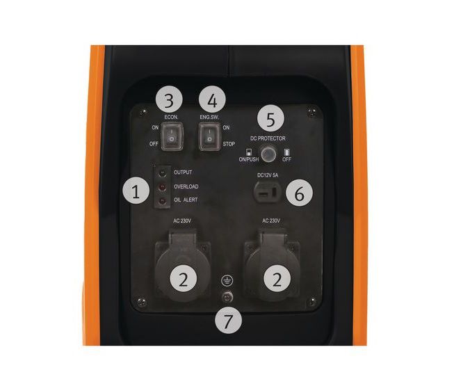 - PG-I 20 SR Invertor generator + 3.8-5.7 hrs running time depending on load + 2x230v / 1x12v 5 A sockets + 4.1 Ltr gasoline cap