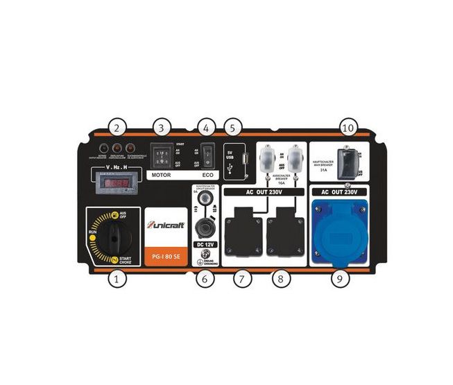 - PG-I 80 SE Invertor generator + indicator lights of output / overload / oil shortage + 10.5-26 hrs running time depending on load + 3x230v sockets + 25 Ltr gasoline cap + electric start