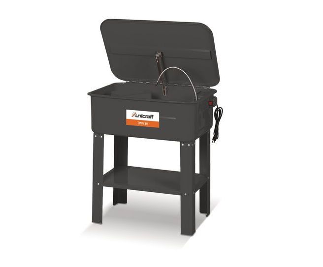 - TWG 80 Floor standing auto parts washer + targetted cleaning/degreasing of parts by flexible hose + electric pump w 3.3 ltr min capacity + 20kg max weight of parts + 26W motor 230v