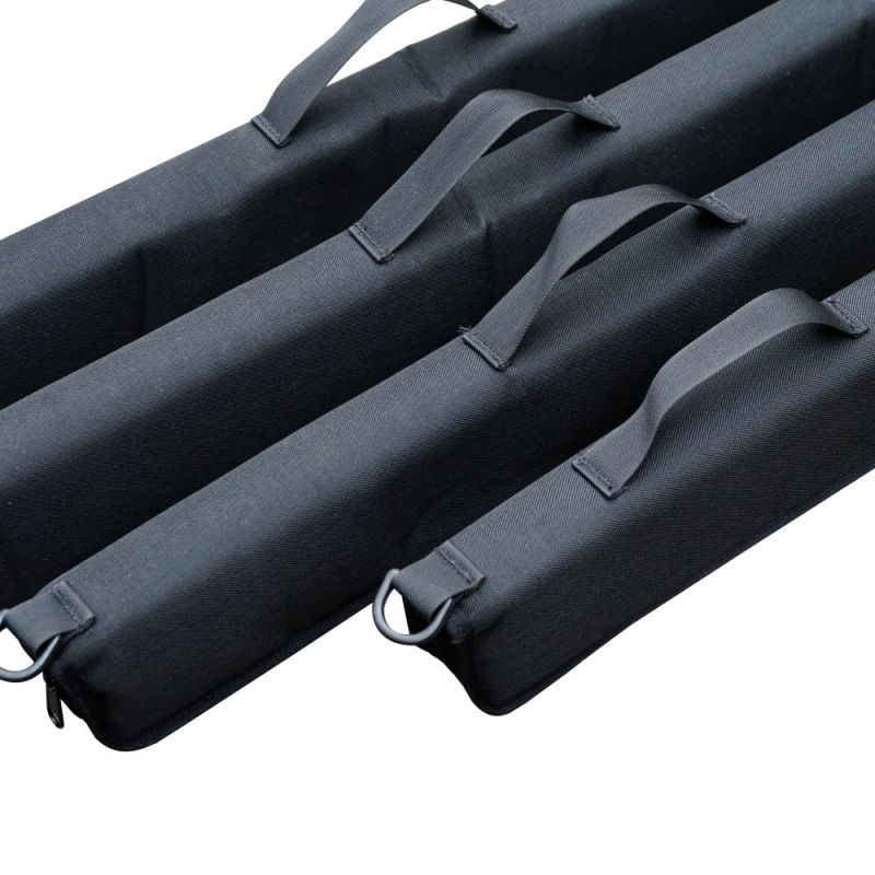 - Constructed from 600 denier polyester outer face with a pvc backing with a open cell foam inner and a brushed nylon lining, Nylon webbing carry handle and D rings.