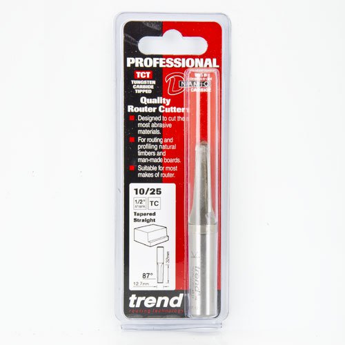 TREND 10/25x1/2TC Professional Tapered Straight Router Cutter 12.7mm dia x 32.0mm Cut