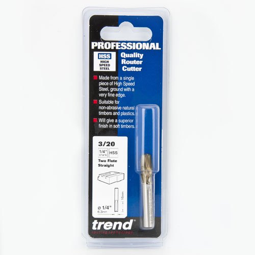 TREND 3/20x1/4HSS Professional Router Cutter Two Flute 6.3mm dia x 16mm Cut