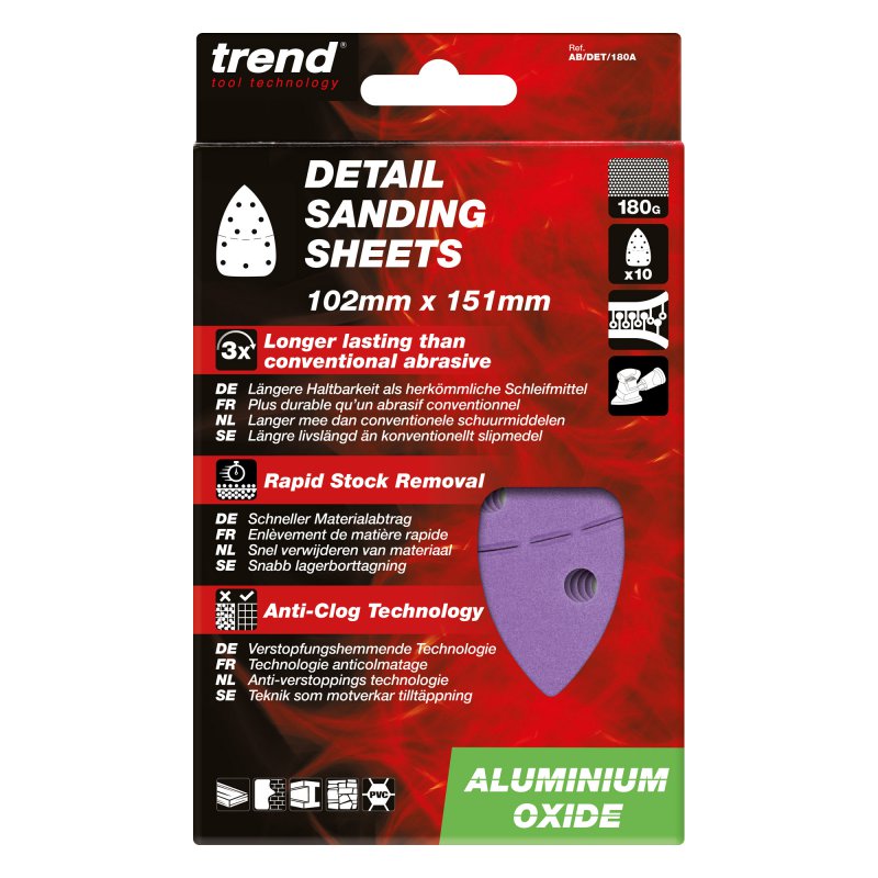 TREND AB/DET/180A - Aluminium Oxide Detail Sanding Sheet, 180 Grit, 102mm x 151mm, 10pc