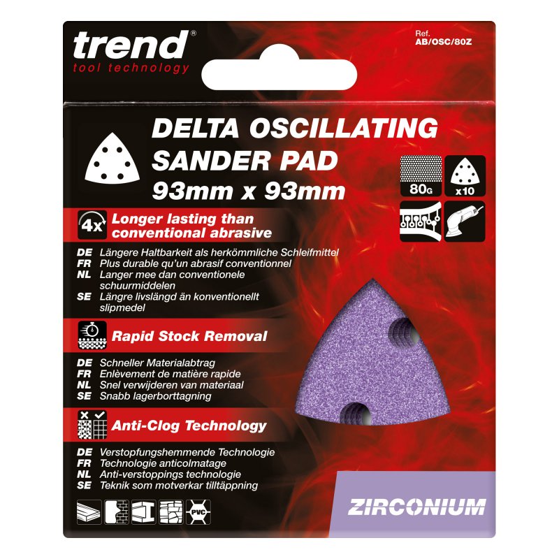 TREND AB/OSC/80Z - Zirconium Delta Sanding Sheet 10 pc 93mm 80 grit