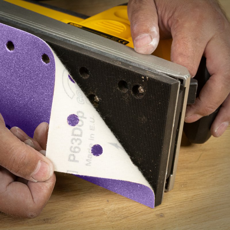 - HOOK AND LOOP FIXING Secure fix to the power tool base. Fast easy removal, increasing productivity when working through grits